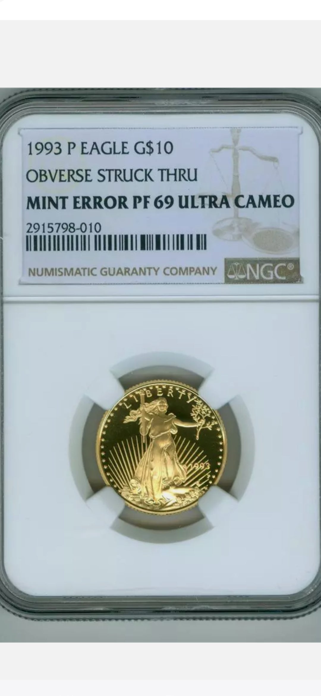 1993 P $10 1/4 OZ GOLD EAGLE PR69 ULTRA CAMEO MINT ERROR NGC -MULE