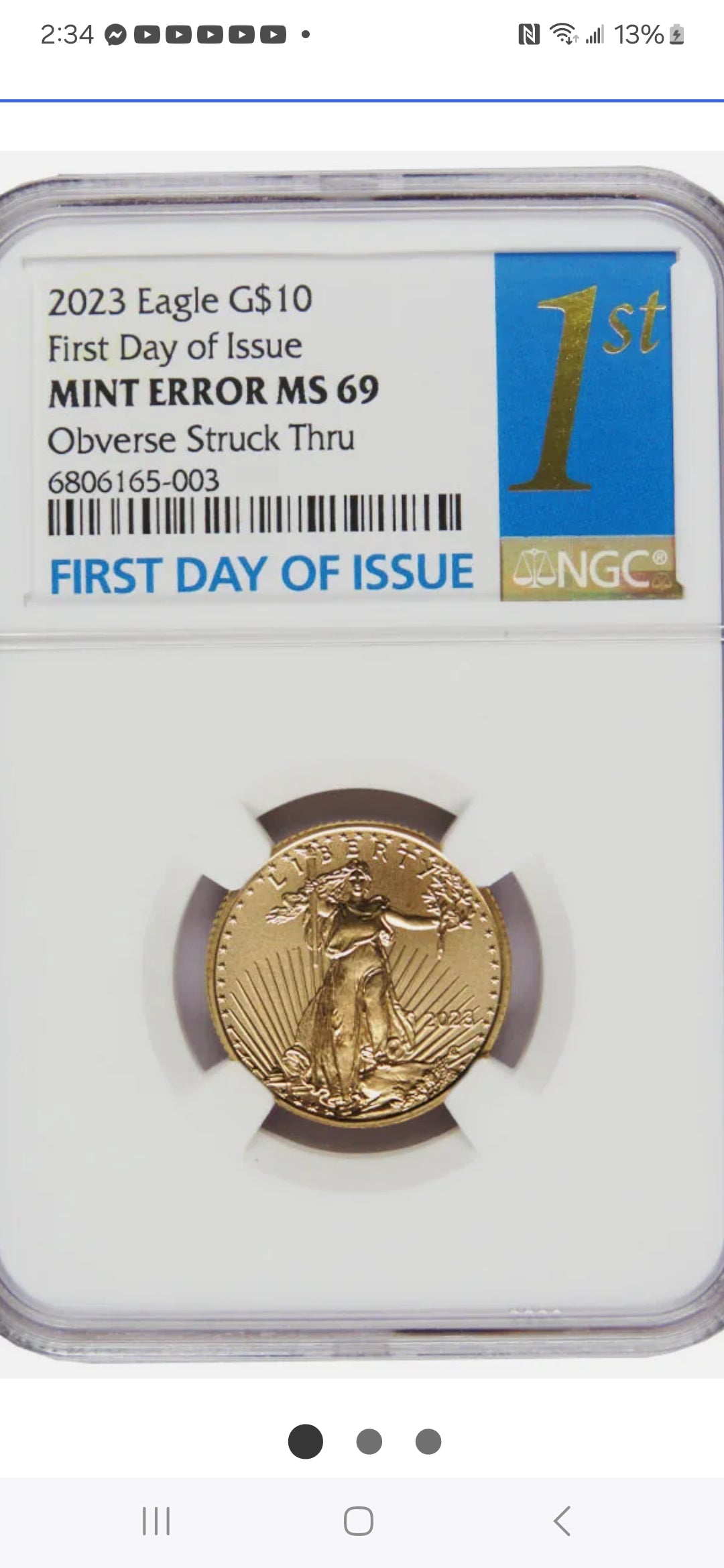 2023 $10 AGE MS69 MINT ERROR OBVERSE STRUCK THRU NGC FDI