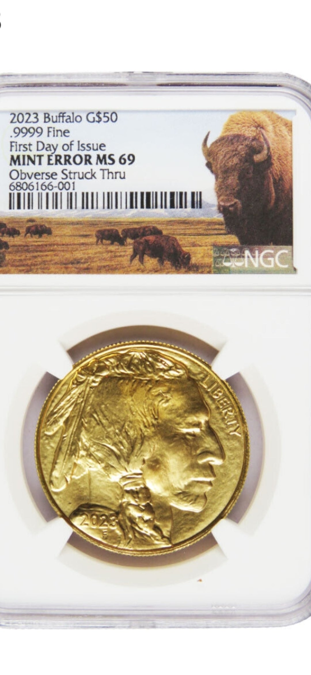 2023 $50 GOLD BUFFALO MS69 MINT ERROR OBVERSE STRUCK THRU