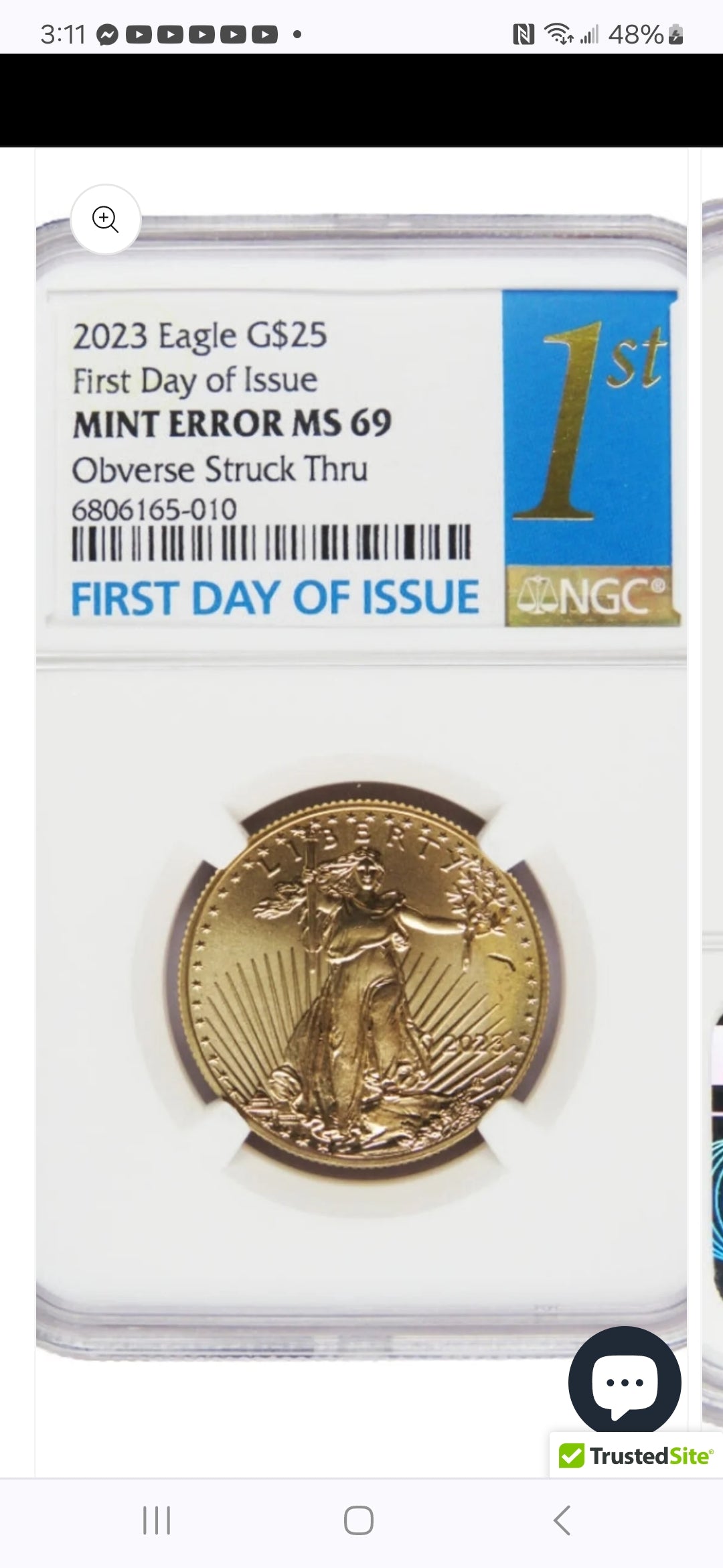 2023 AGE $25 1/2 OZ .999 MS69 MINT ERROR OBVERSE STRUCK THRU FINEST KNOWN MULE- FDI - NGC